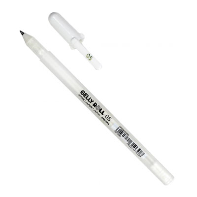 Los Gelly Roll son lápices de gel especiales para detalles, decoraciones y escritura sobre papeles contrastantes de colores oscuros. Tienen un rodamiento excelente que te permite ahorrar y trazar muchísimas veces sin que se reviente el sistema de inyección. Al secar, la tinta queda opaca y resistente al agua.